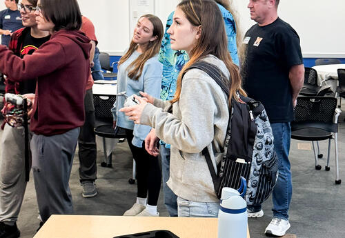 Excitement was in the air as students and guests got their first look at drone soccer i...
