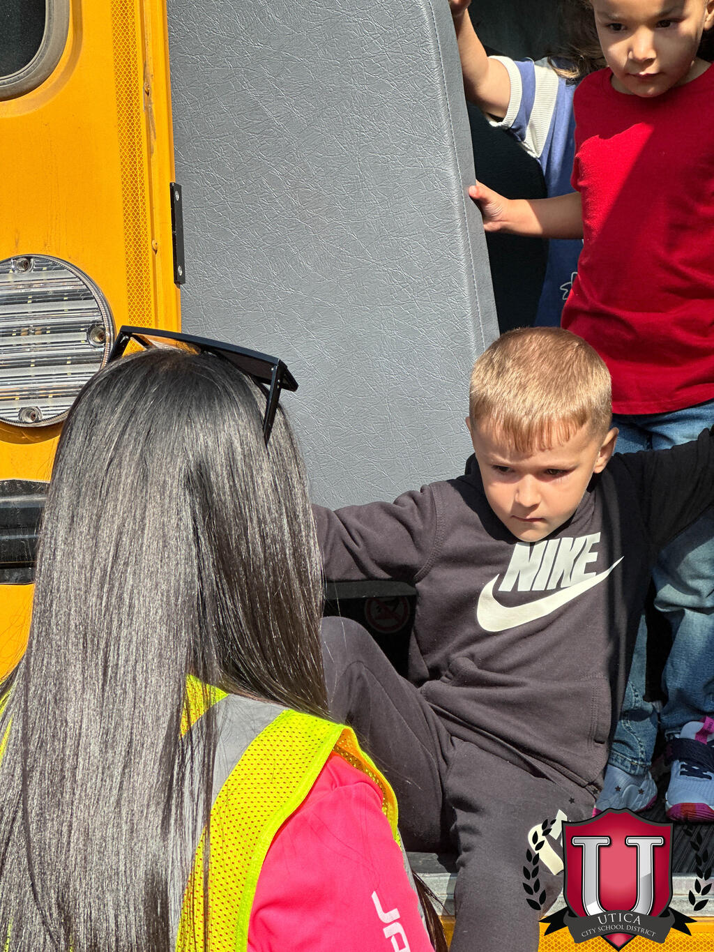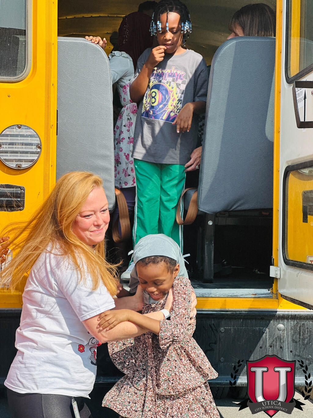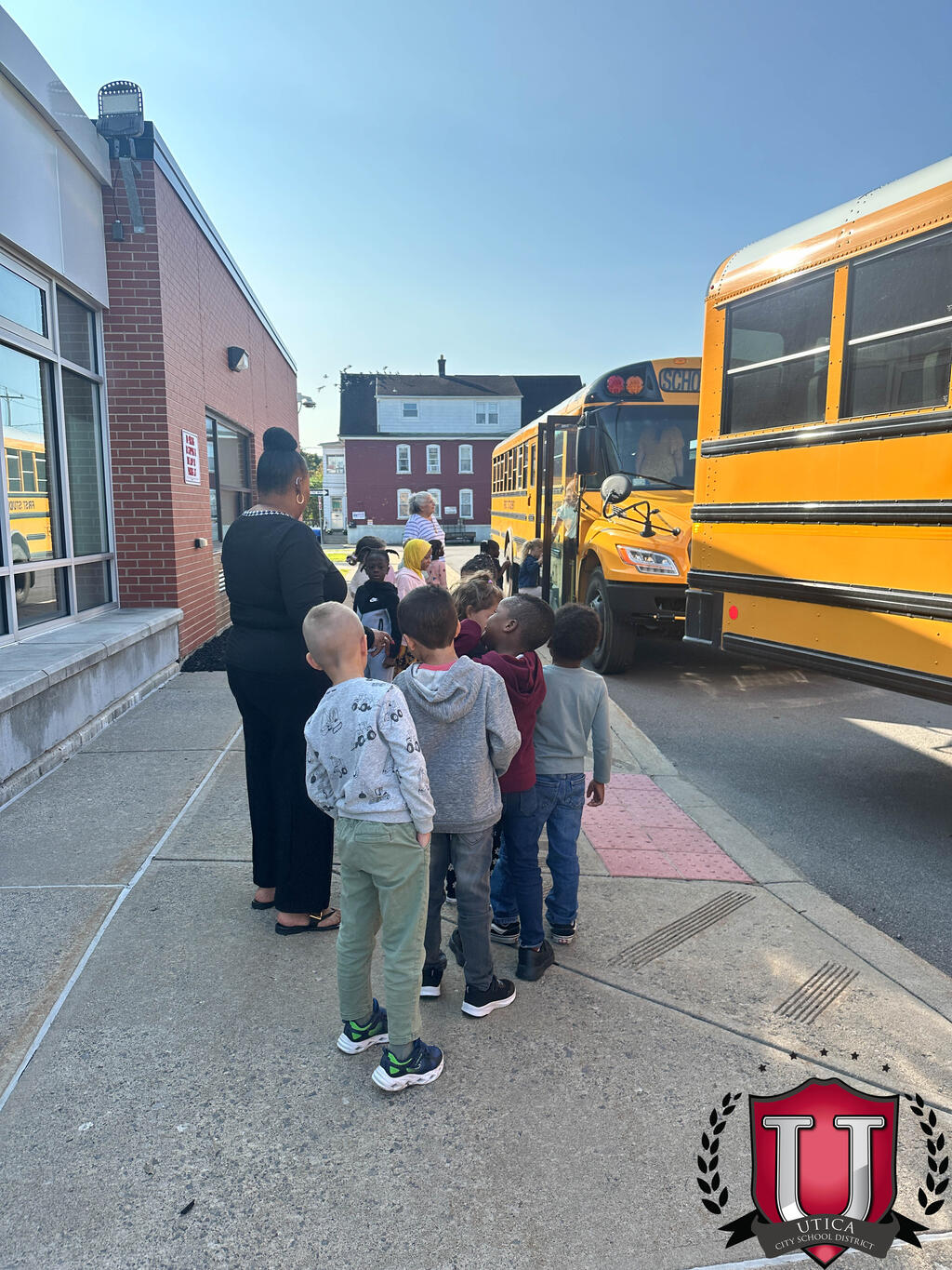 ນັກຮຽນແລະພະນັກງານຊັ້ນປະຖົມຂອງ Albany ໄດ້ປະຕິບັດຄວາມປອດໄພໃນລົດເມໃນວັນພຸດ, ວັນທີ 9 ກັນຍາ.