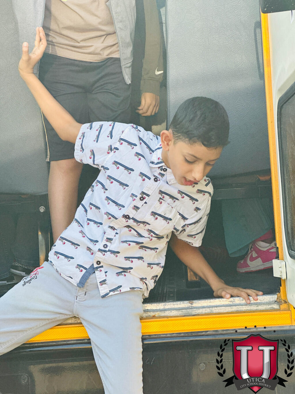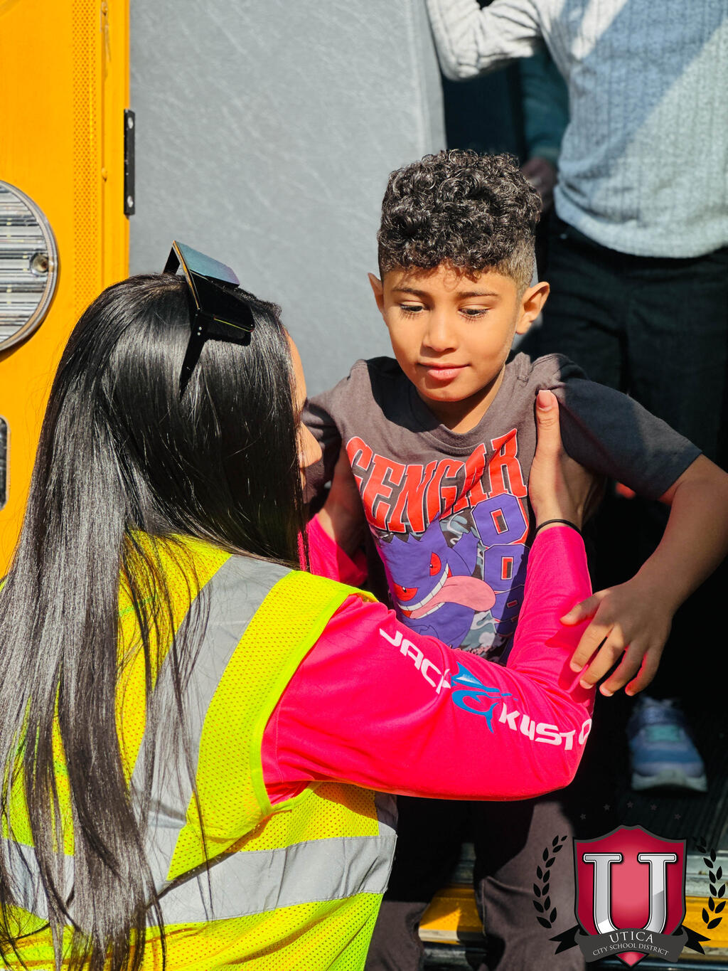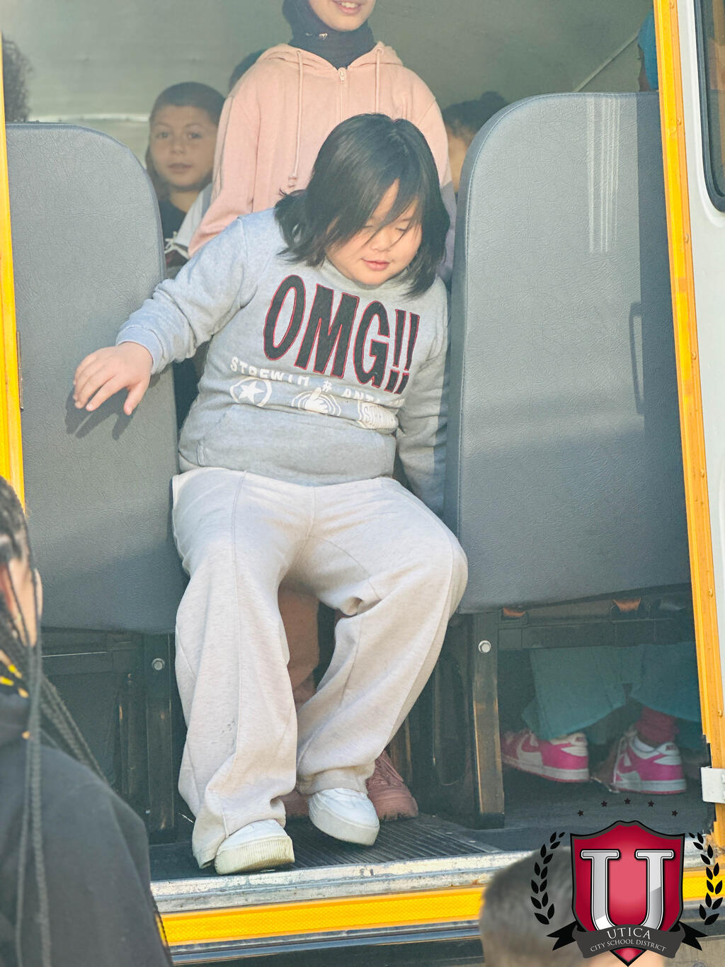 ນັກຮຽນແລະພະນັກງານຊັ້ນປະຖົມຂອງ Albany ໄດ້ປະຕິບັດຄວາມປອດໄພໃນລົດເມໃນວັນພຸດ, ວັນທີ 9 ກັນຍາ.